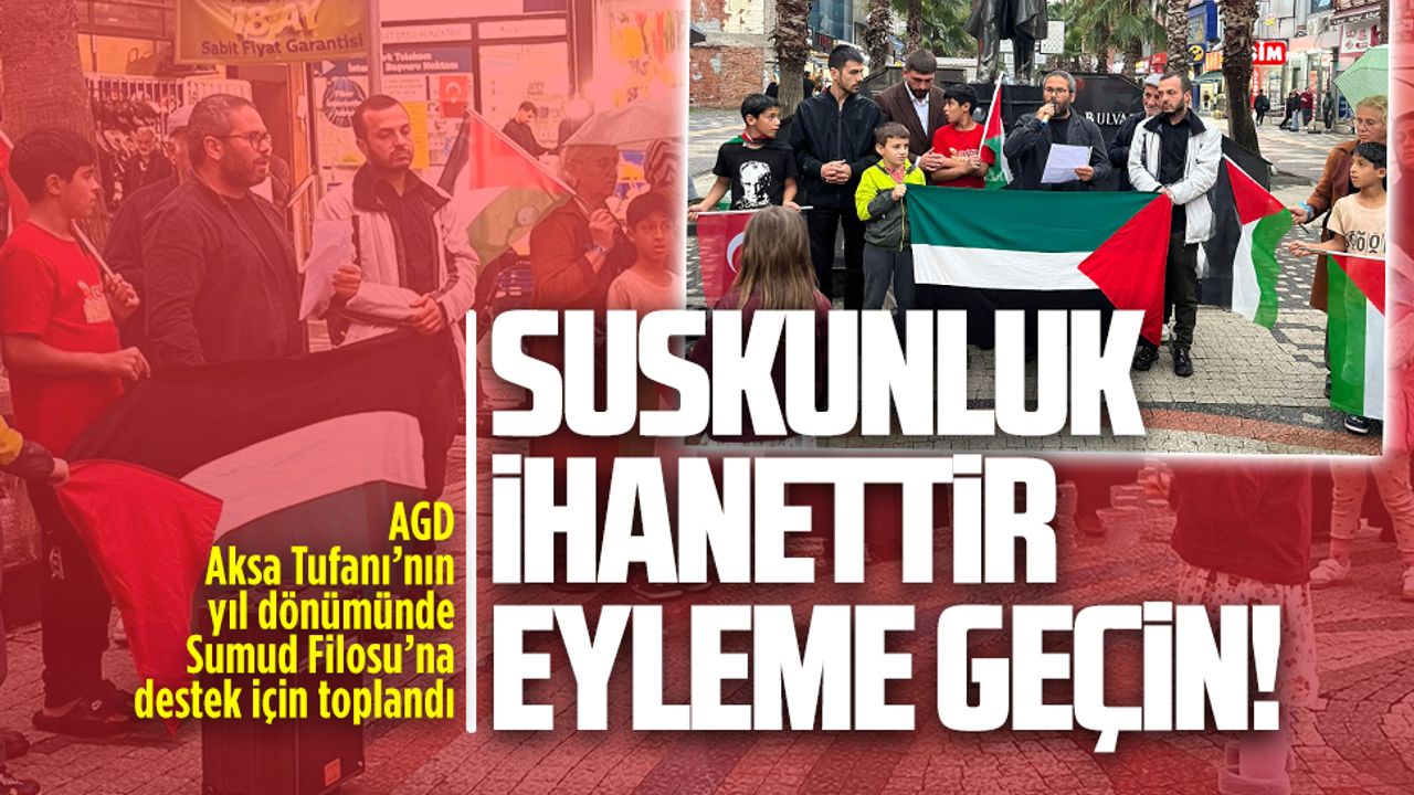 AGD Karasu ve Kocaali ilçe temsilcileri, 7 Ekim Aksa Tufanı’nın yıl dönümü ve Sumud Filosuna destek amacıyla Karasu Atatürk Bulvarı’nda bir araya gelerek basın açıklaması yaptı. Basın açıklamasını Kocaali İlçe Temsilcisi Muhittin Öztopaloğlu okudu. Öztopaloğlu, “Vicdan yolculuğu bitmedi! aktivistler onurlu duruşları nedeniyle esir tutuluyor” ifadelerini kullandı. Öztopaloğlu açıklamasında şu ifadelere yer verdi: