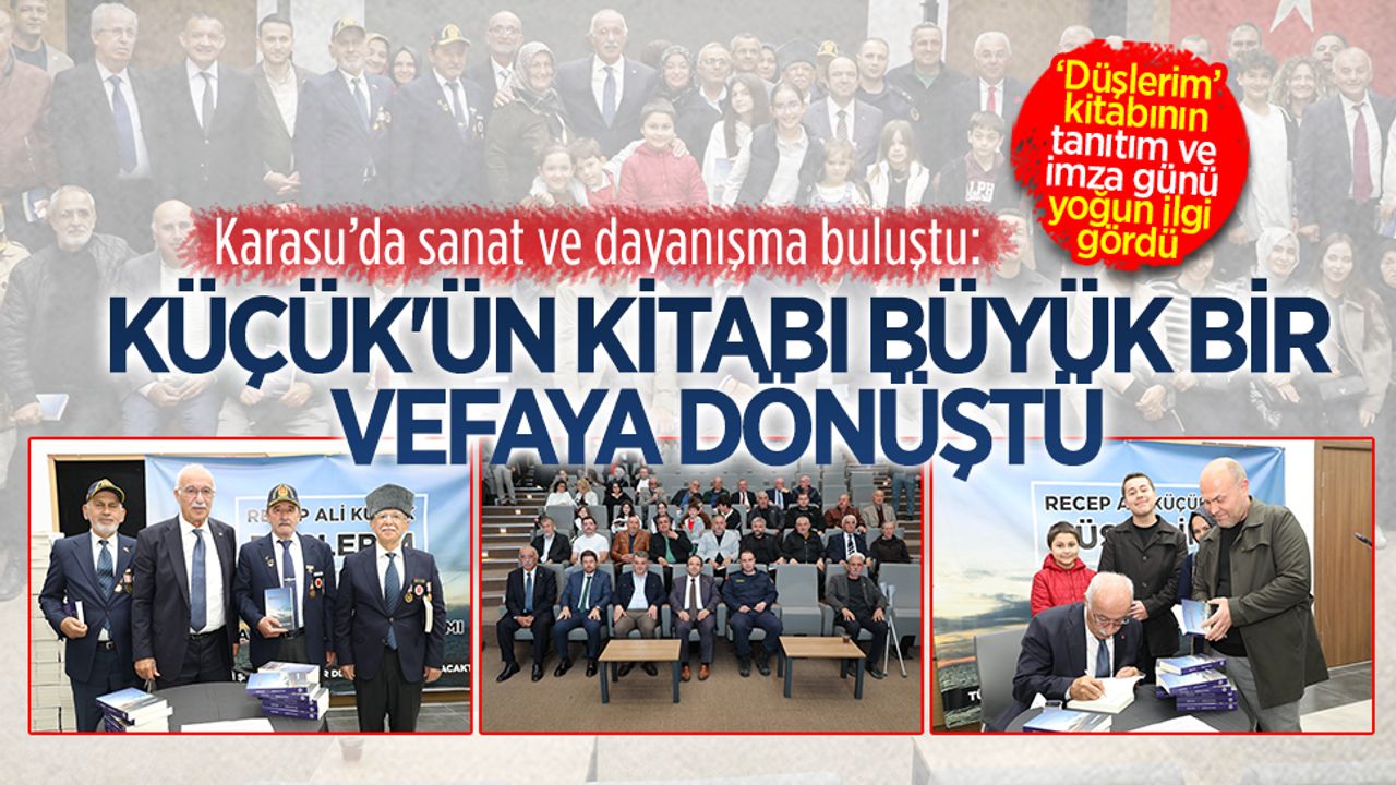 Karasu Sosyal Gelişim Merkezi'nde Cuma günü, gelirinin tamamı ve telif hakları Şehit Aileleri ve Gaziler Derneği'ne bağışlanacak olan “Düşlerim” adlı kitabının tanıtımı ve imza programı gerçekleştirildi. Sunuculuğu Orhan Topçu'nun üstlendiği programın öncesinde verilen kokteyl ile başladı. Kokteyllin ardından salonda düzenlenen programda saygı duruşunda bulunuldu ve İstiklal Marşı okundu. Ardından Merkez Çarşılı Camii İmam Hatibi Ali Sarımert tarafından Kur'an-ı Kerim tilaveti okundu. Tilavetin ardından “Düşlerim” kitabının yazarı Recep Ali Küçük, bir selamlama konuşması yaparak kaleme aldığı şiirleri seslendirdi.