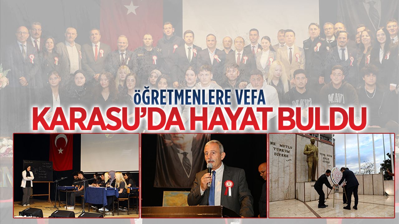 Karasu’da 24 Kasım Öğretmenler Günü kutlamaları kapsamında karasu Kaymakamlığı önünde çelenk töreni düzenlendi. Törende İlçe Milli eğitim Müdürü Furkan Enşici, Atatürk anıtına çelenk sundu. Ardından saygı duruşunda bulunuldu ve İstiklal Marşı okundu. Programın ardından Müdür Furkan Enşici, törende bulunan öğretmenlerin gününü kutladı. Çelenk töreninin son bulmasının ardından kutlama programı Şehit Üsteğmen İbrahim Abanoz Anadolu Lisesi Konferans Salonu’nda devam etti. Duygusal anlar ve anlamlı konuşmaların yaşandığı program, saygı duruşunda bulunulması ve Halk Eğitimi Merkezi Müzik Öğretmeni Nesrin Akan Çiftçi yönetiminde İstiklal Marşı’nın okunmasıyla başladı.