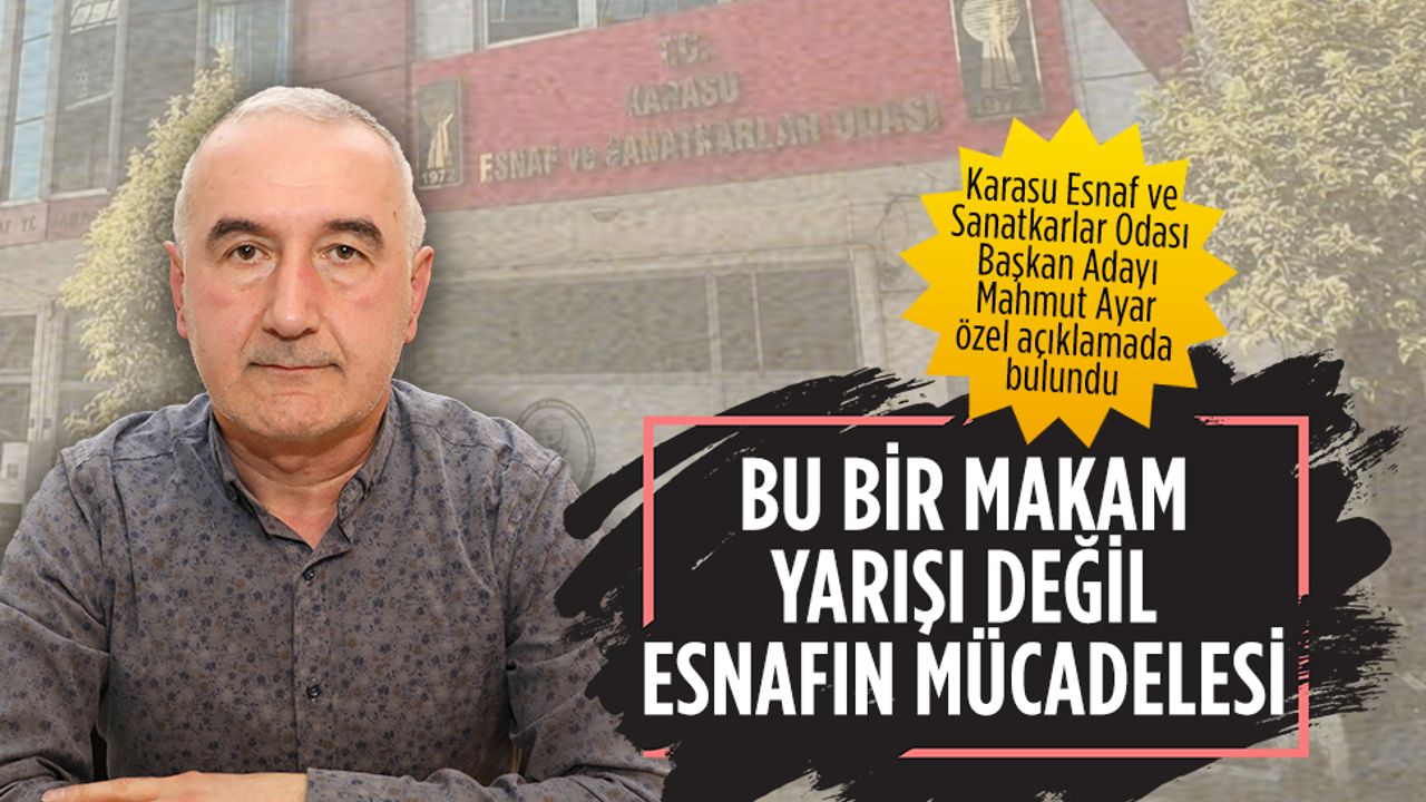15 Şubat’ta yapılacak olan Karasu Esnaf ve Sanatkarlar Odası seçimi için Mahmut Ayar çalışmalarını sürdürüyor. Öncü Karasu Gazetesi ve Karasu Haberleri'ne yaptığı açıklamada “Karasu Esnaf ve Sanatkarlar Odası yalnızca bir tabela ya da resmi yapı değildir” diyen Ayar, “Bu oda; sabah kepenk açan, akşam evine yorgun dönen esnafın sesi, güvencesi ve en güçlü dayanağı olmak zorundadır. İşte ben bu anlayışla aday oldum” dedi.