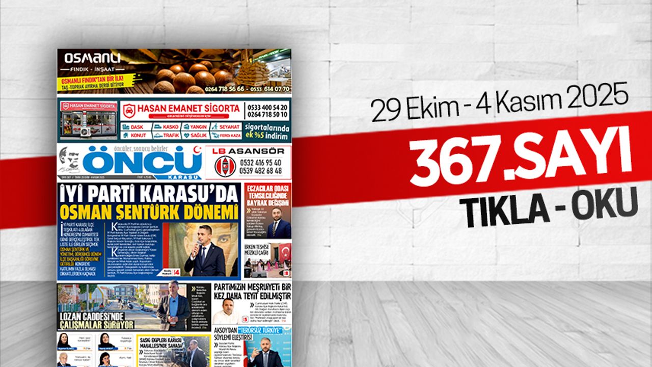 Öncü Karasu Gazetesi 367.sayı (29 Ekim - 4 Kasım 2025) tüm sayfalar. Gazeteyi dev boyutta, tam ekran okumak için sayfaların üzerine tıklayınız.