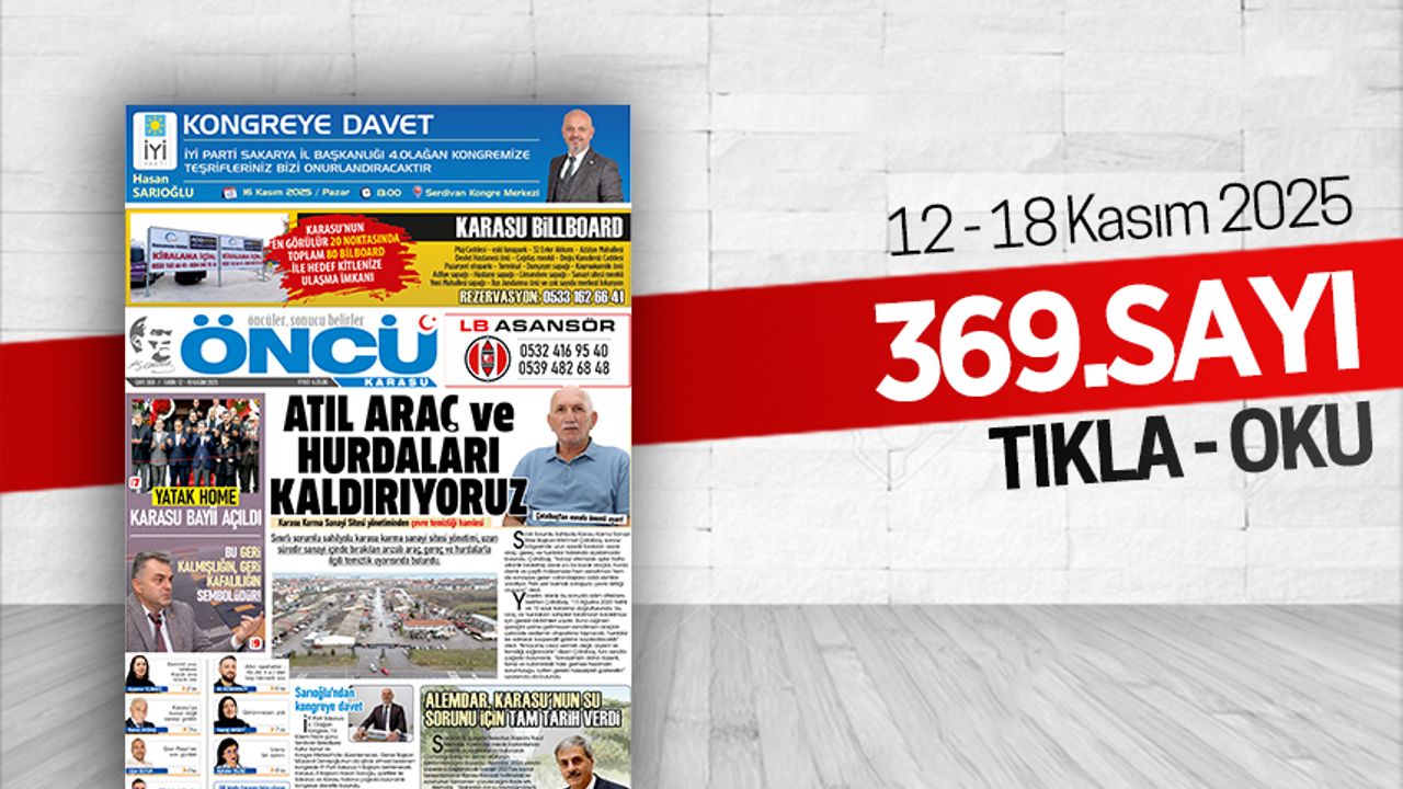 Öncü Karasu Gazetesi 369.sayı (12 - 18 Kasım 2025) tüm sayfalar. Gazeteyi dev boyutta, tam ekran okumak için sayfaların üzerine tıklayınız.