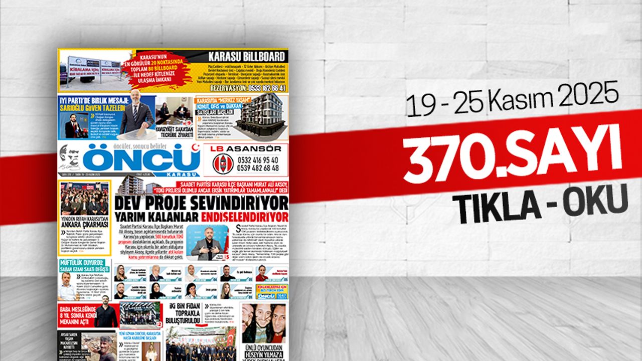 Öncü Karasu Gazetesi 370.sayı (19 - 25 Kasım 2025) tüm sayfalar. Gazeteyi dev boyutta, tam ekran okumak için sayfaların üzerine tıklayınız.