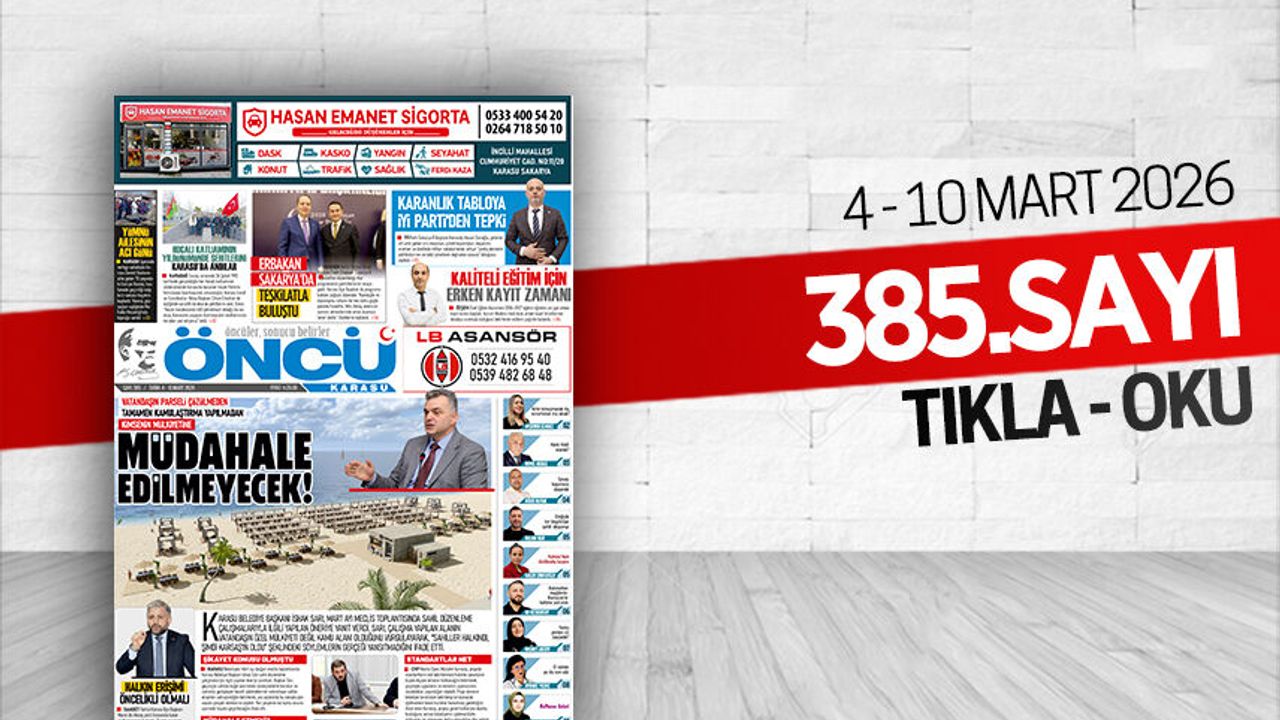 Öncü Karasu Gazetesi 385.sayı (4 - 10 Mart 2026) tüm sayfalar. Gazeteyi dev boyutta, tam ekran okumak için sayfaların üzerine tıklayınız.