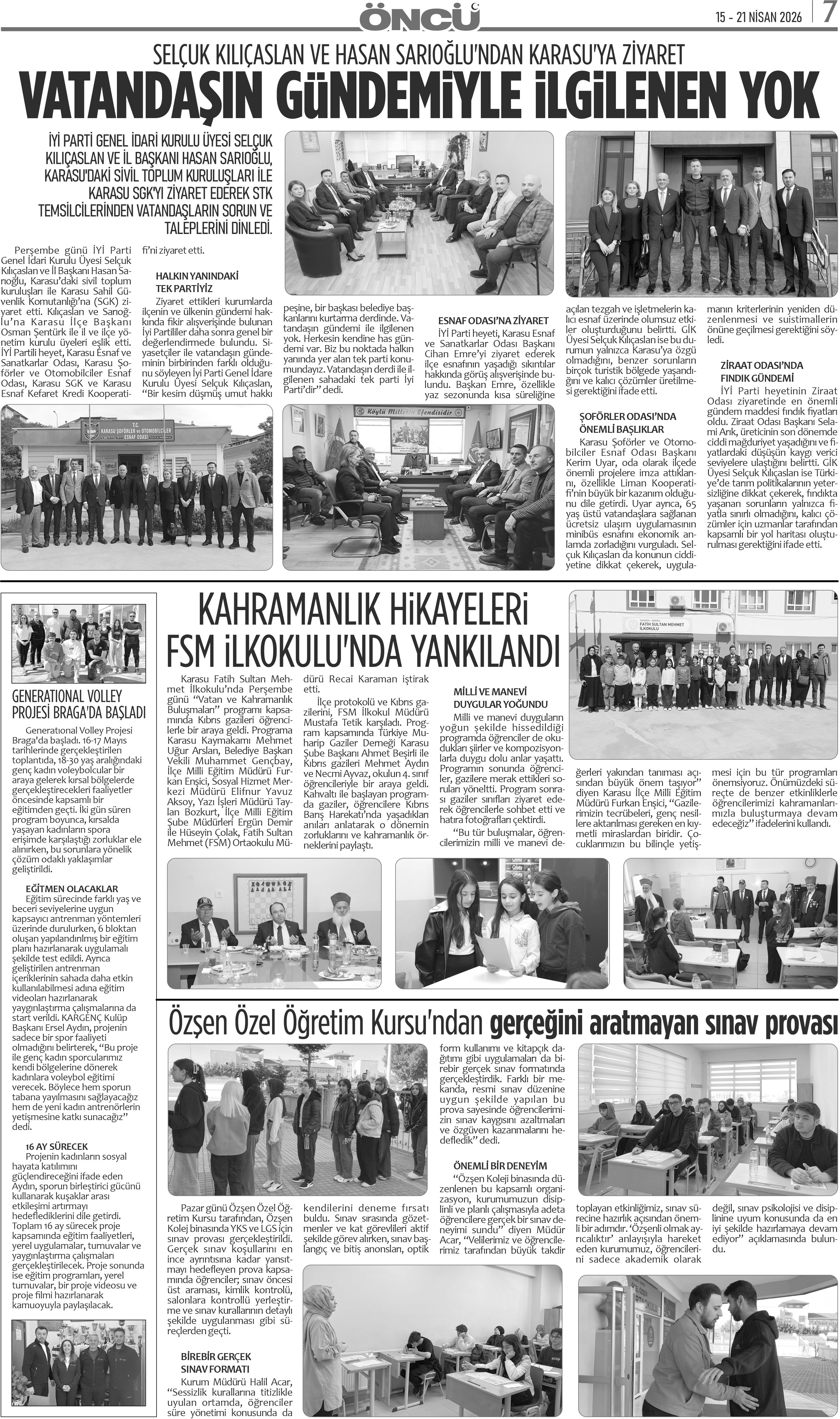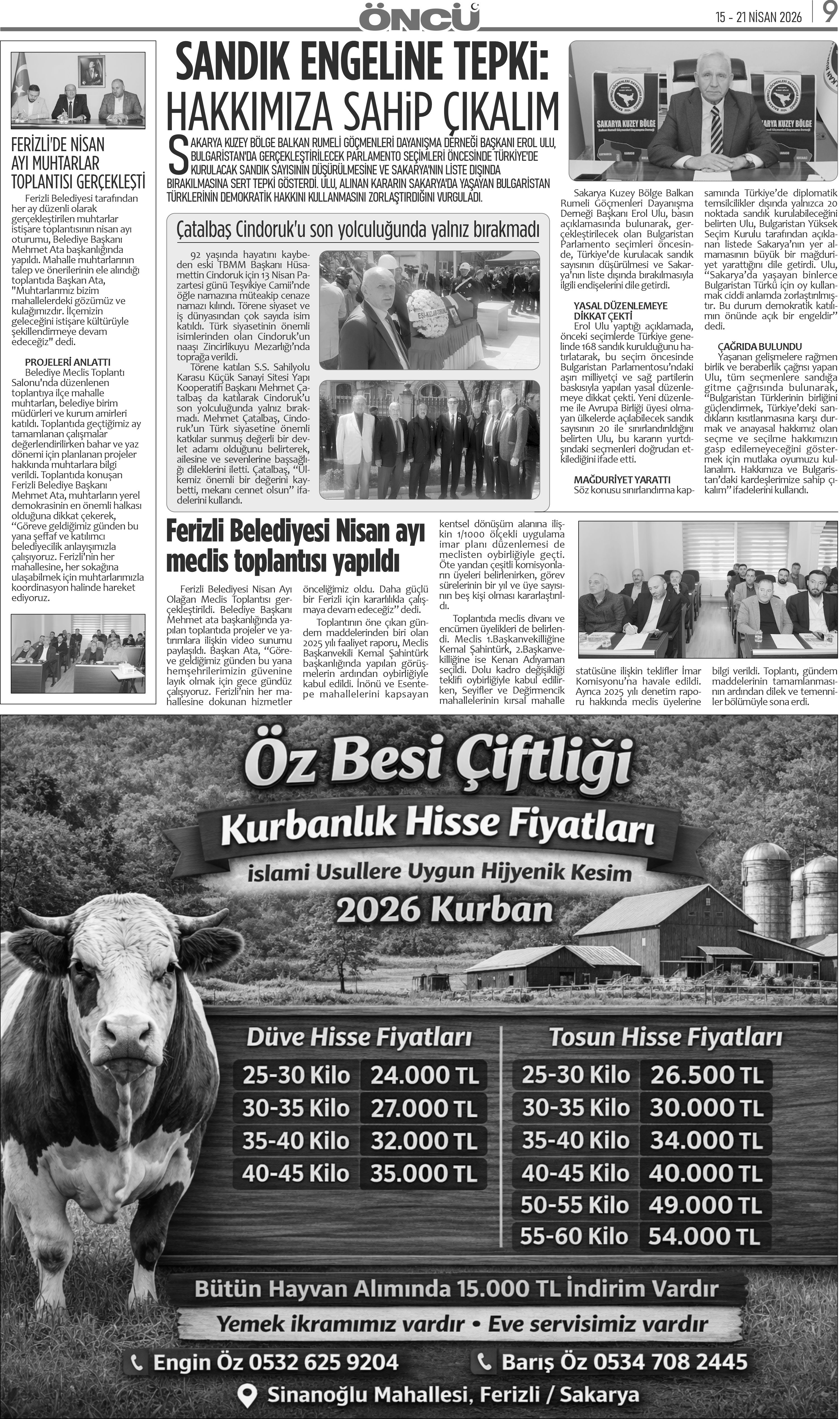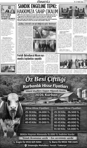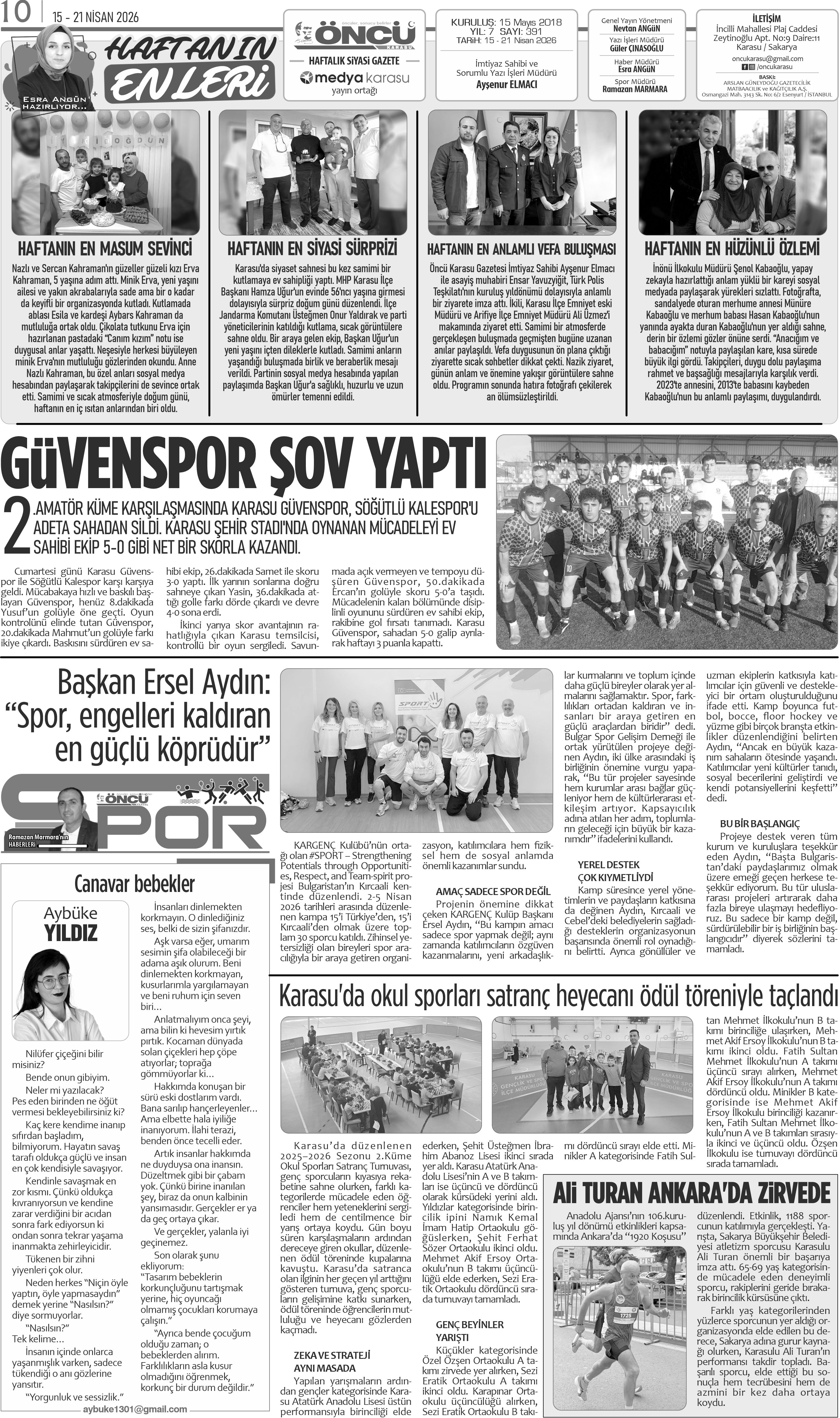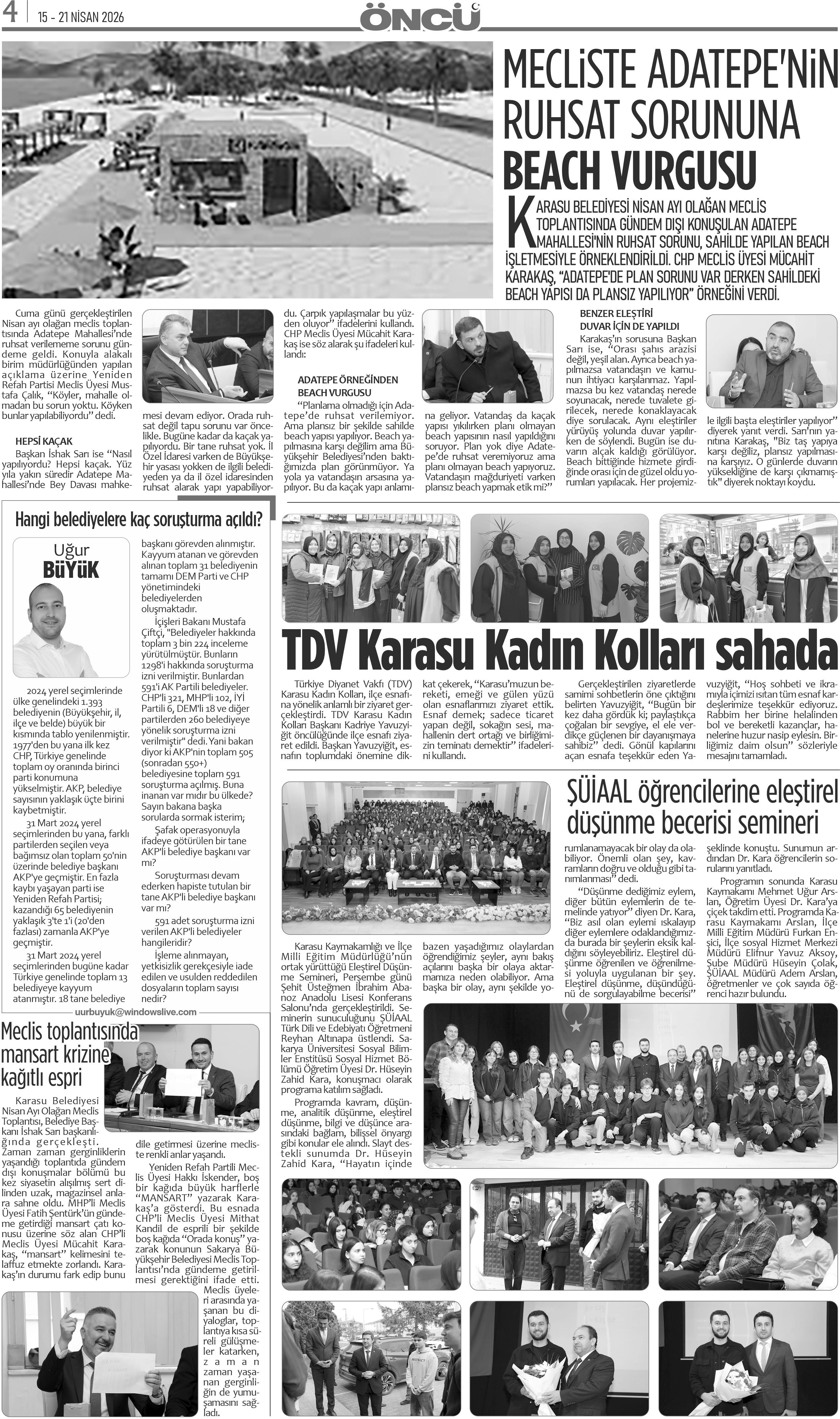 Öncü Karasu Gazetesi 391.sayı (15 - 21 Nisan 2026) tüm sayfalar. Gazeteyi dev boyutta, tam ekran okumak için sayfaların üzerine tıklayınız.