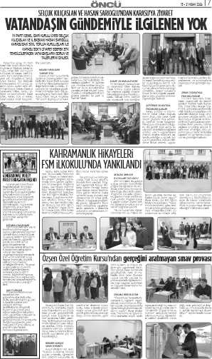 ÖNCÜ KARASU GAZETESİ DİĞER YILLARA AİT ARŞİVLER için buraya tıklayın