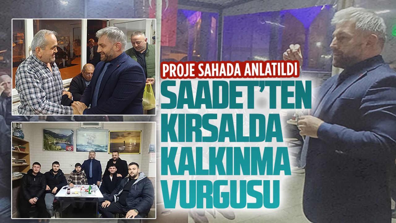 Saadet Partisi Karasu İlçe Teşkilatı, Karasu ve Kuyumculu mahallelerini ziyaret etti. Ziyarette Başkan Murat Ali Aksoy, partinin “Türkiye Kalkınma Planı” başlığı altında hazırladığı projeleri mahalle sakinlerine anlattı. Heyet, kahvehanelerde vatandaşlarla bir araya gelerek hazırlanan el broşürlerini dağıttı. Broşürleri inceleyen ve proje sunumunu dikkat dinleyen mahalle sakinleri projelerin geç kalınmış ancak yerinde ve ihtiyaçlara cevap veren çalışmalar olduğu yönünde görüşlerini dile getirdi.