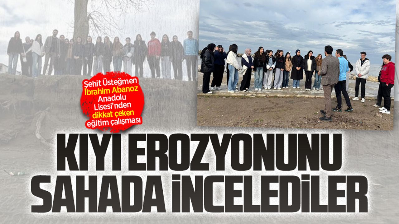 Şehit Üsteğmen İbrahim Abanoz Anadolu Lisesi Çevre Koruma Kulübü Danışman Öğretmeni Barış Çiftçi ve Okul Müdürü Adem Arslan ile birlikte kulüp öğrencileri tarafından Karasu'da etkili olan Kıyı Erozyonu konusunda arazi inceleme çalışması yapıldı.